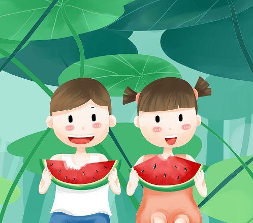 “哇,这瓜真甜啊!”一个小朋友一边吃着西瓜,一边兴奋地喊道。